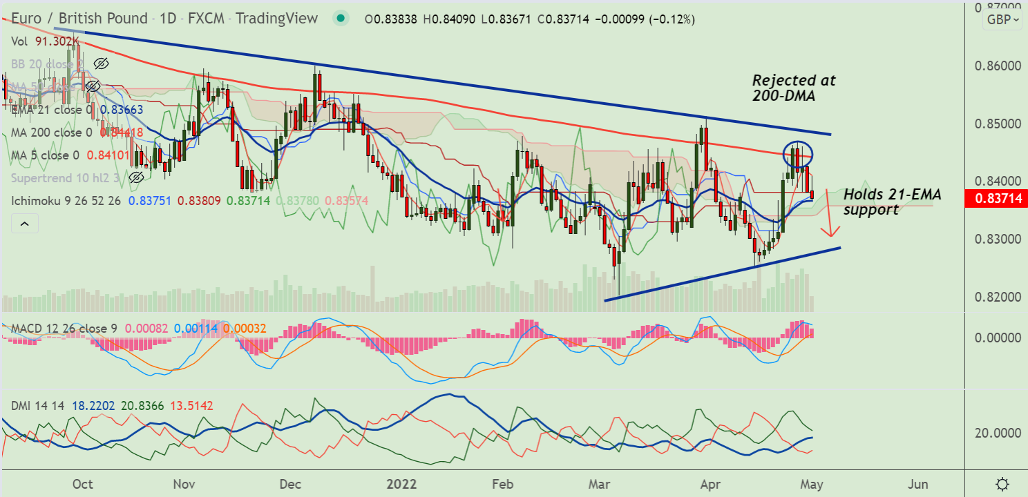 Support levels - 0.8366 (21-EMA), 0.8345 (20-DMA)