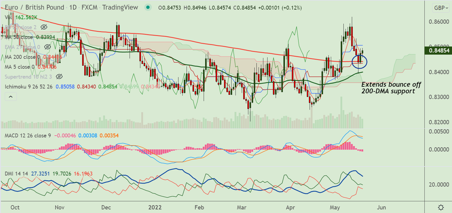 Support levels - 0.8470 (5-DMA), 0.8456 (21-EMA), 0.8441 (200-DMA)