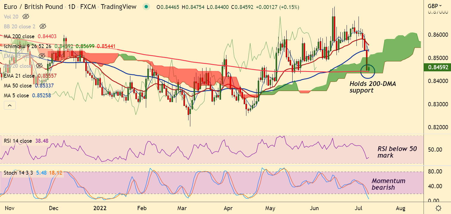 EUR/GBP was trading 0.11% higher on the day at 0.8455 at around 11:00 GMT.