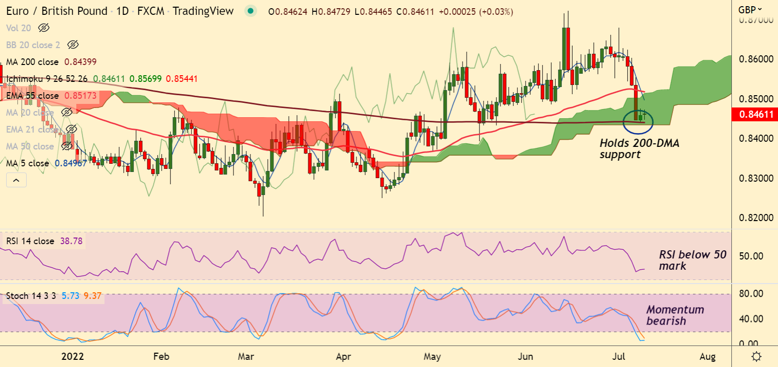 Summary: EUR/GBP pivotal at 200-DMA support. Weakness only on decisive break below. Retrace above 110-EMA will see more upside in the pair.