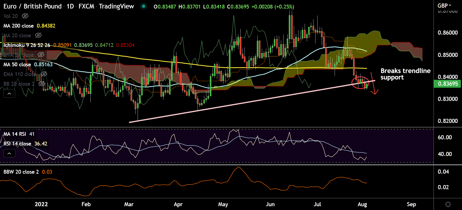 Support - 0.8334 (Lower BB), Resistance - 0.8368 (5-DMA)