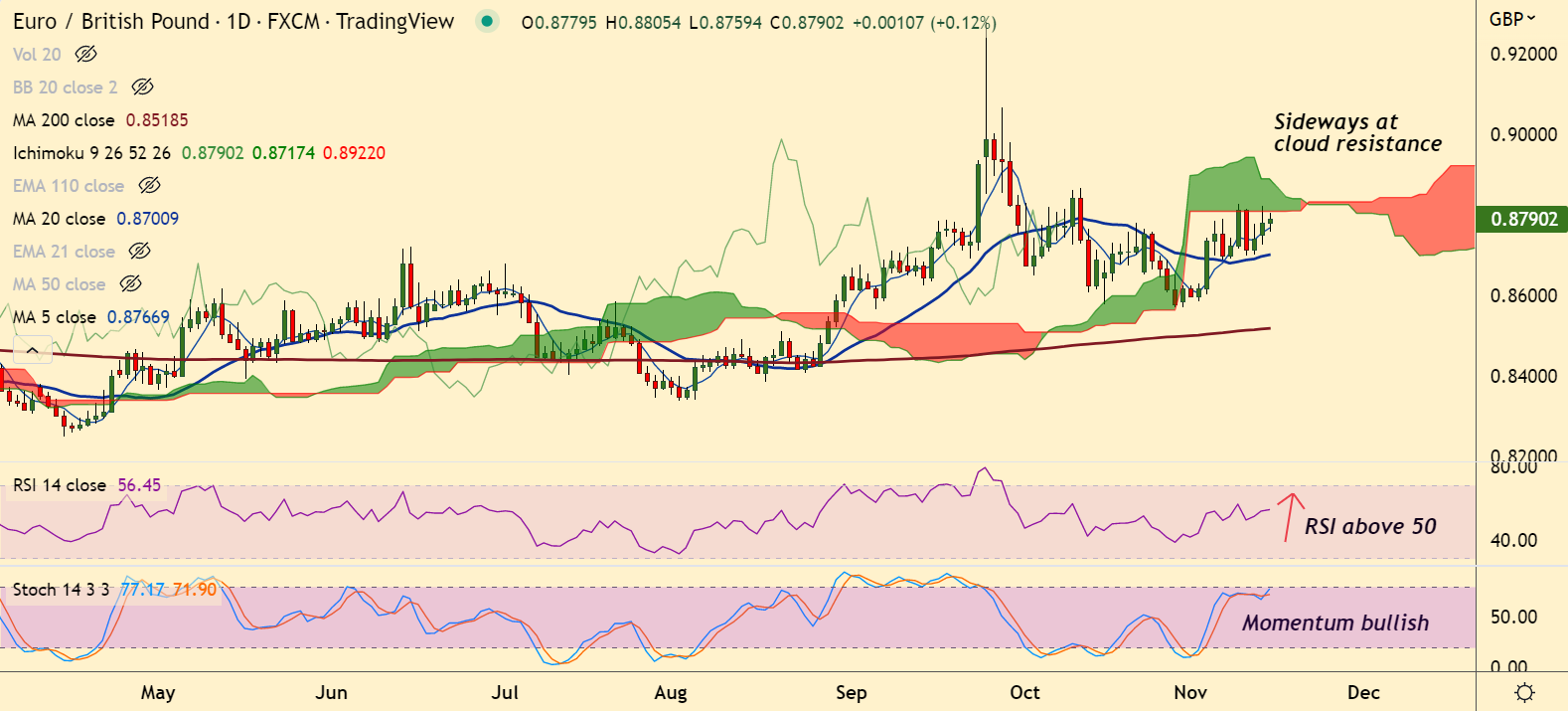 EUR/GBP was trading 0.21% higher on the day at 0.8796 at around 10:50 GMT.
