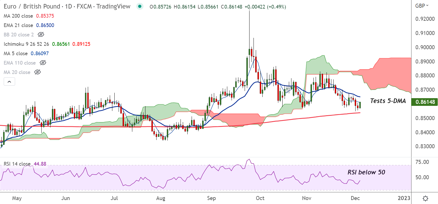 - EUR/GBP was trading 0.48% higher on the day at 0.8613 at around 13:50 GMT