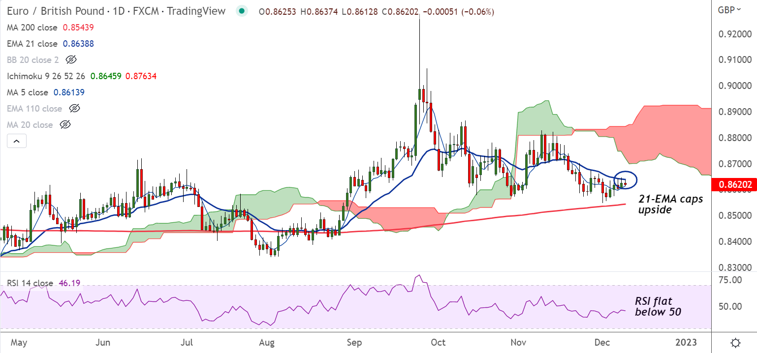 The pair is extending sideways, finds strong resistance at 21-EMA, decisive break above required for upside continuation.