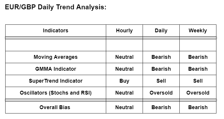SuperTrend Indicator: SuperTrend indicator gives a Sell signal on daily and weekly charts. Any upside on the hourly charts could provide a good opportunity for entry