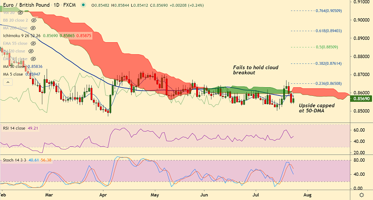 Upside was capped at 50-DMA which is offering stiff resistance at 0.8584, decisive break above to see further gains.