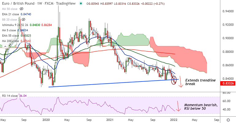 Summary: EUR/GBP poised for further downside. Scope for test of 200-month MA at 0.8182 in the near-term.