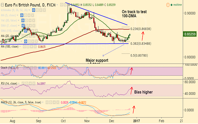- Resistance levels - 0.8571 (Dec 8 high), 0.86, 0.8635 (100-DMA), 0.8683 (23.6% Fib)