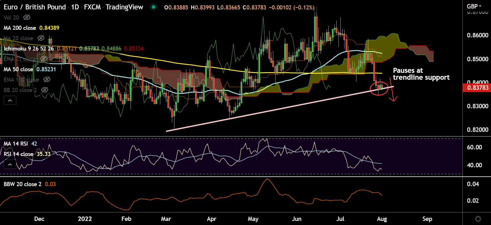 EUR/GBP has shown a decisive break below 200-DMA in the previous week's trade adding to the downside bias.