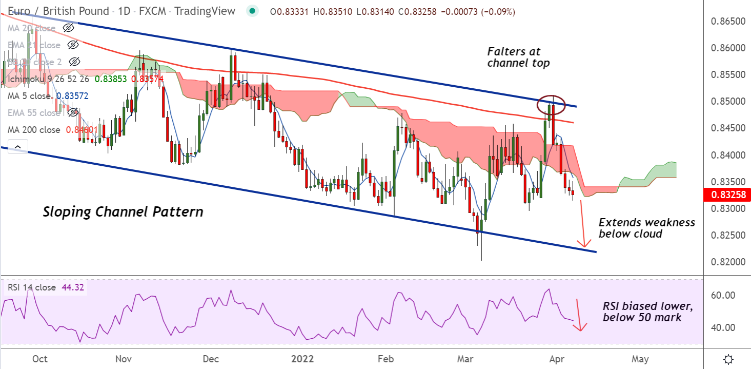 The pair is extending weakness below daily cloud after price action was rejected at channel top.