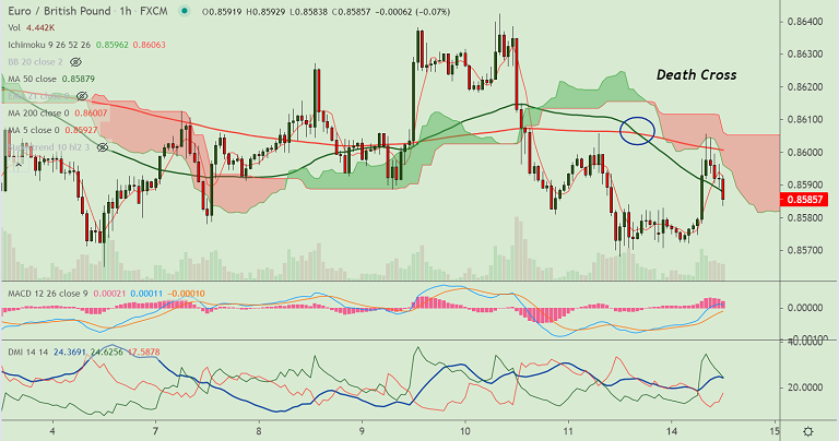 200H MA offers stiff resistance on the intraday charts, upside was rejected at 200H MA resistance at 0.86.