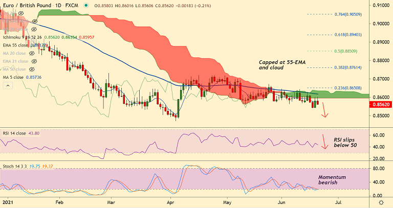Resistance levels - 0.8573 (5-DMA), 0.8591 (21-EMA), 0.8617 (55-EMA)