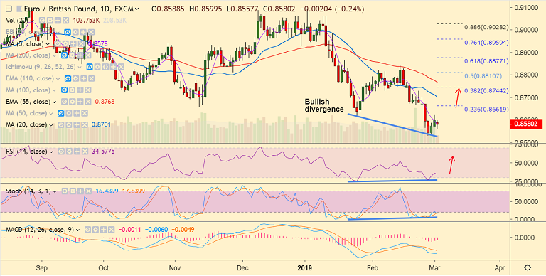 - Bullish divergence on RSI and Stochs seen on daily charts raises scope for further upside.