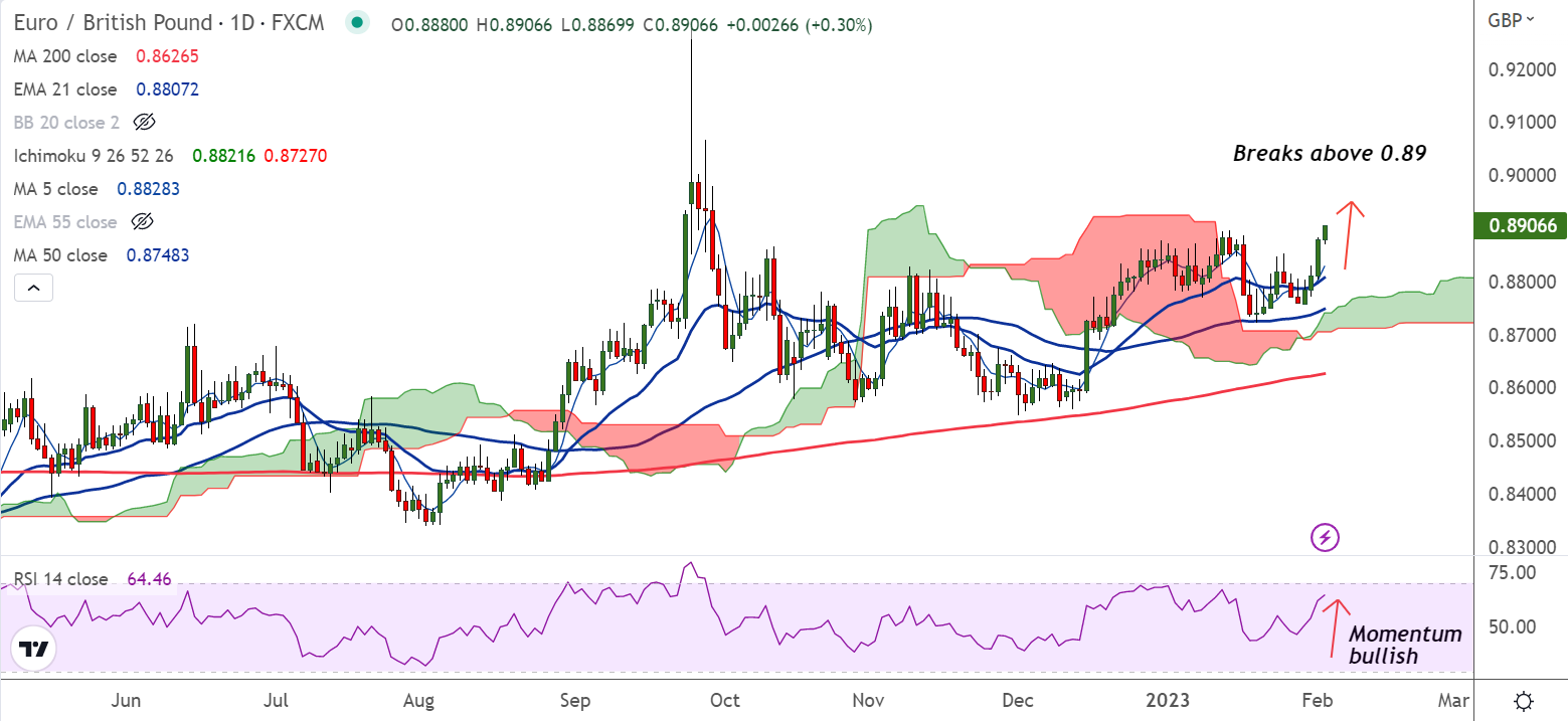 Summary: EUR/GBP trades with a bullish technical bias. Central bank actions to influence price action. Scope for test of fresh multi-month highs above 0.89.