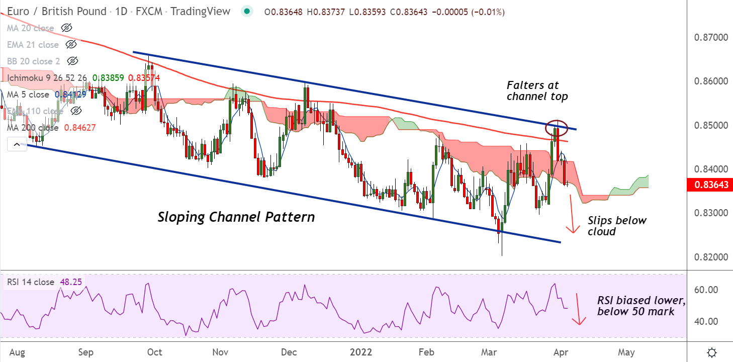 - EUR/GBP slips below daily cloud