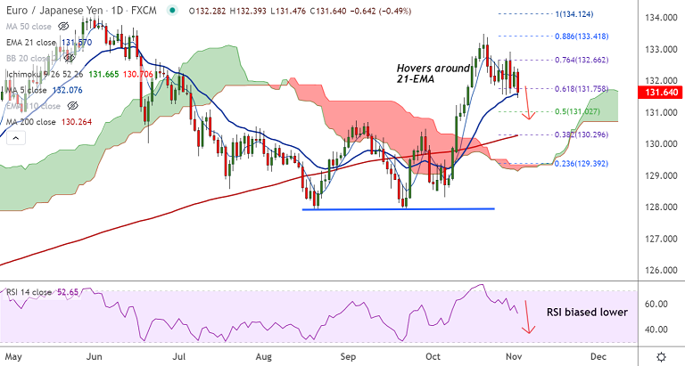 - The pair is hovering around 21-EMA support, breach below will drag the pair lower