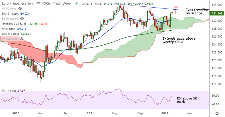 - EUR/JPY closed a whopping 2.66% higher in the previous week