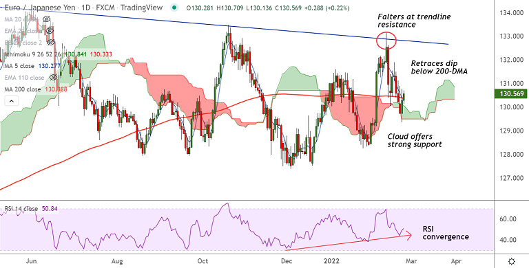 Summary: EUR/JPY hovers around 200-DMA, decisive close above will fuel further gains.