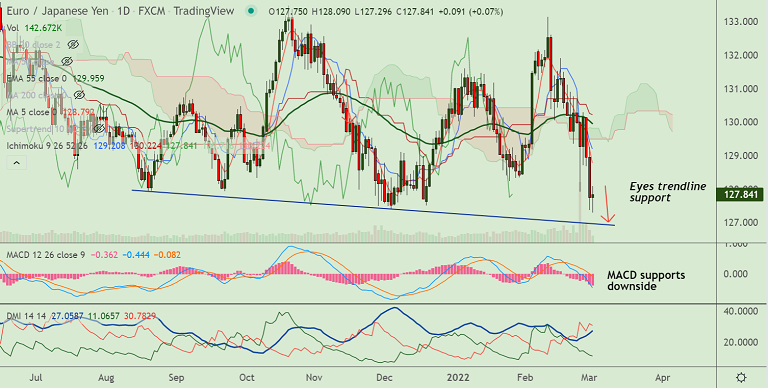 Resistance levels - 128.83 (5-DMA), 129.17 (55-week EMA), 129.49 (200H MA)