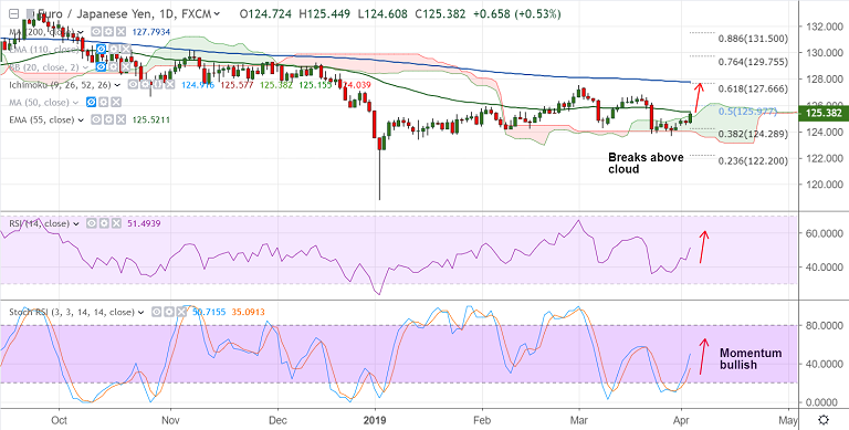 Recommendation: Stay long above 55-EMA at 125.52, SL: 124.65, TP: 126.30/ 127/ 127.50