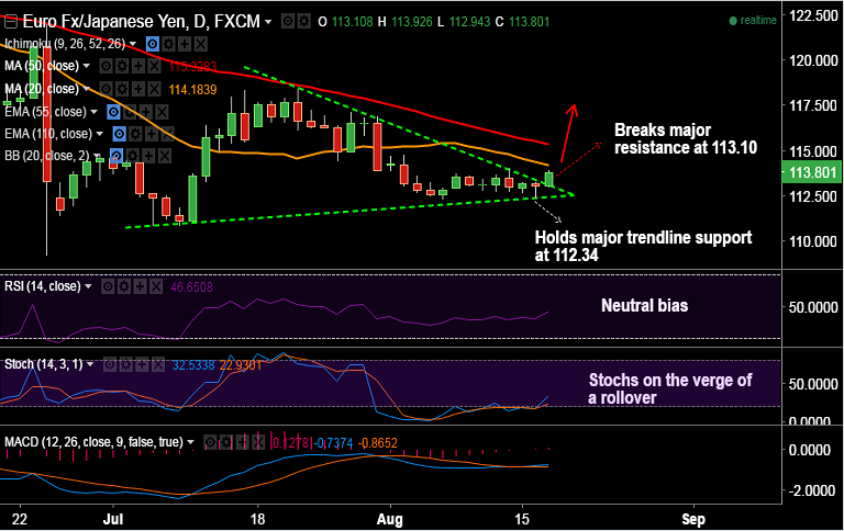 - EUR/JPY turns positive after holding strong trendline support at 112.34 levels.