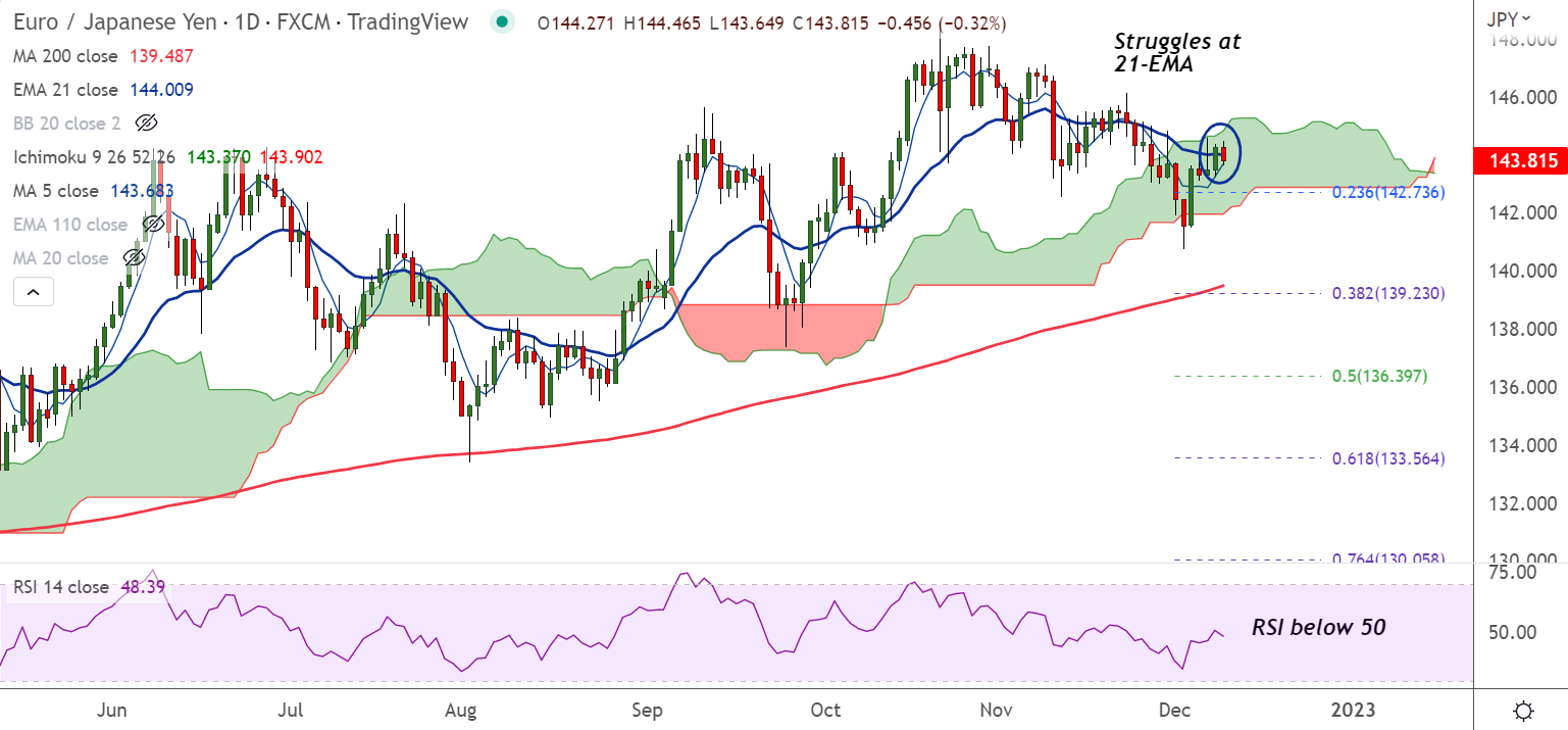 Support levels - 144.01 (21-EMA), 143.68 (5-DMA)