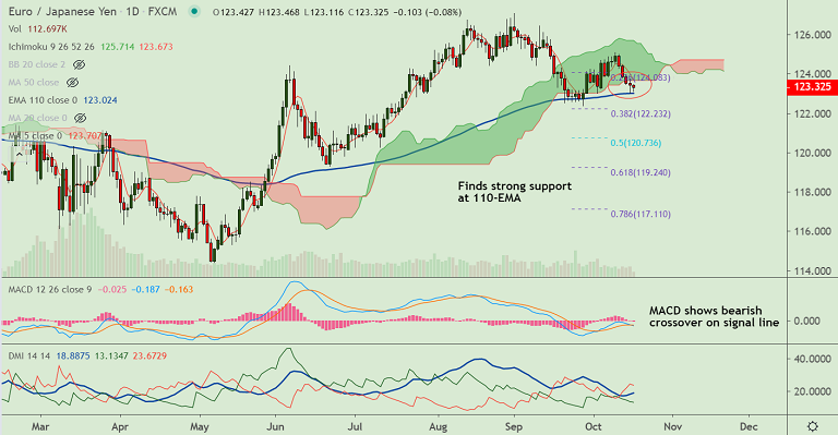 The pair finds minor support at 110-EMA at 123.02, break below will accentuate weakness. Next major bear target lies at 200-DMA at 121.06.