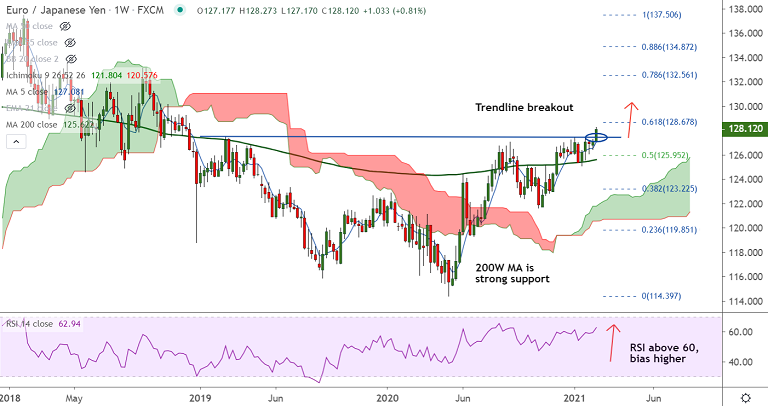 EUR/JPY refreshes 26-month high above 128 handle, more upside on cards as bulls show no sign of exhaustion.