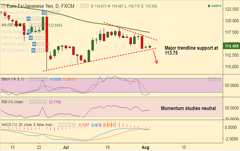 - Break below 113.75 could drag the pair to 113 and violation there could see test of 112.40.