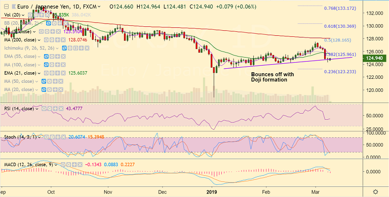 - EUR/JPY is extending recovery from 3-week lows at 124.27 hit on Thursday's trade.