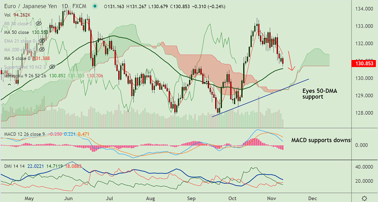 Support levels - 130.55 (50-DMA), 130.38 (200-DMA), 129.50 (Trendline)