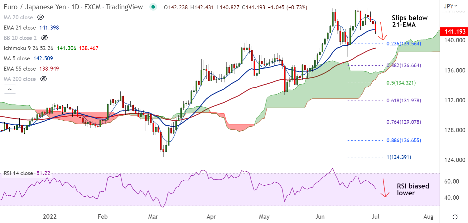Resistance levels - 141.37 (21-EMA), 142.45 (5-DMA)