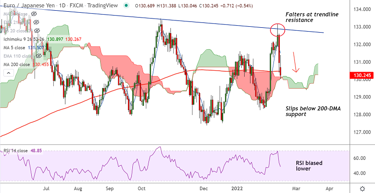 - The pair has slipped below 200-DMA support, raising scope for further downside