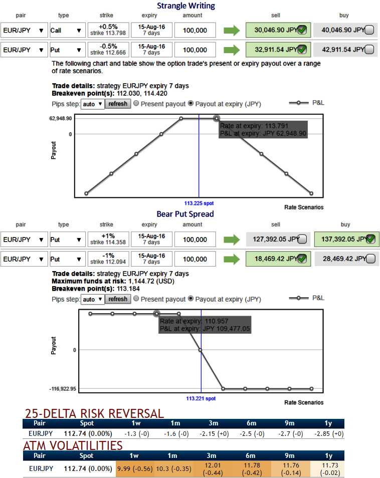Thus, short 7D (1% OTM striking) put and (1% OTM striking) call simultaneously of the same expiry (preferably the short term for maturity is desired).