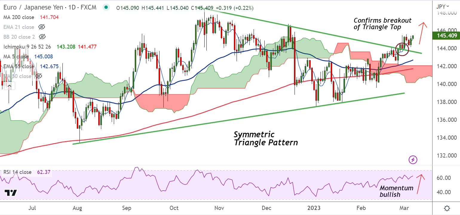 Summary: EUR/JPY poised for further upside. The pair is on track to refresh yearly high above 146 level.