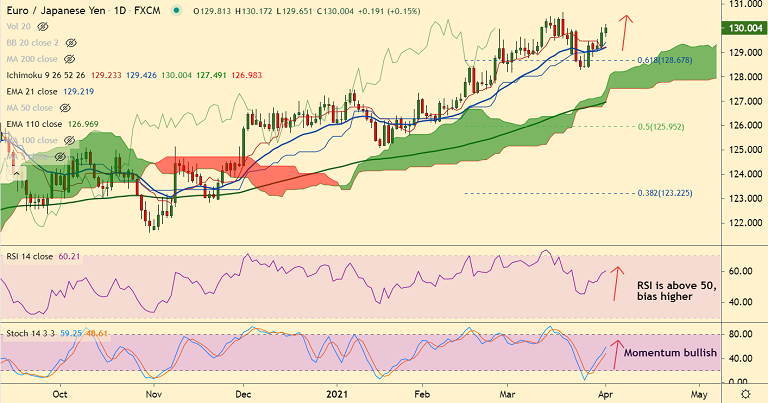 EUR/JPY is holding gains above 130 handle and was trading 130.026 at around 11:10 GMT.