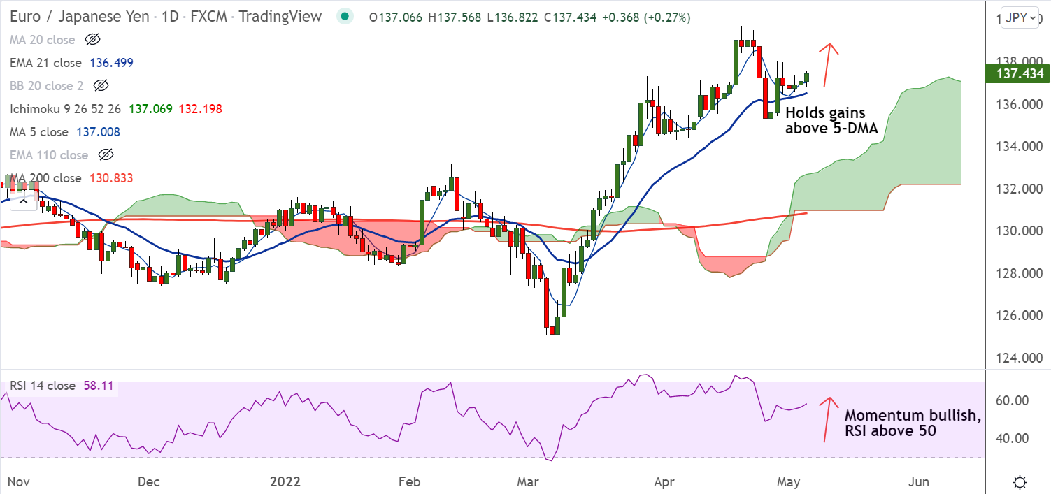 EUR/JPY was trading 0.28% higher on the day at 137.44 at around 09:40 GMT, extends gains for the third straight session.