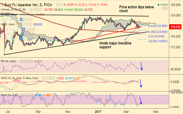 - EUR/JPY is holding strong support at major trendline support at 119.45.