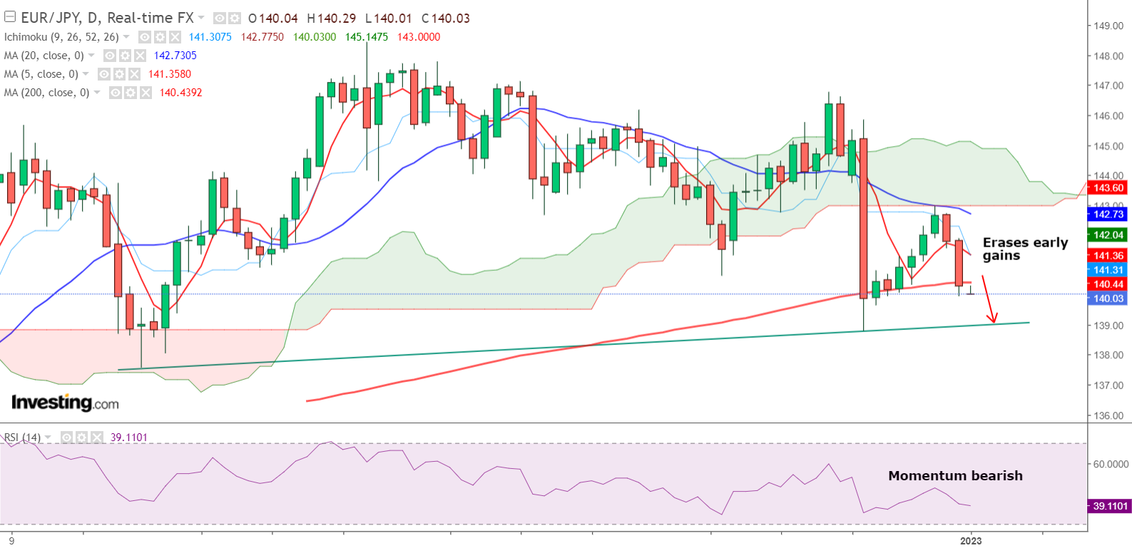 Summary: EUR/JPY is poised for further downside. Dip till 139.23 likely, more weakness n break below. Bearish invalidation likely on retrace above 200-DMA.