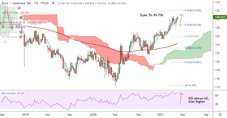 EUR/JPY was trading 0.27% higher on the day at 130.47 at around 09:45 GMT, bias bullish.