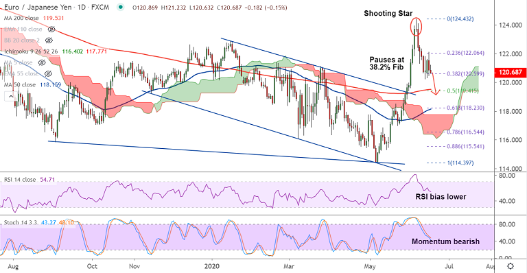 Price action failed to break above stiff resistance at 200H MA at 121.87, raising scope for further weakness.