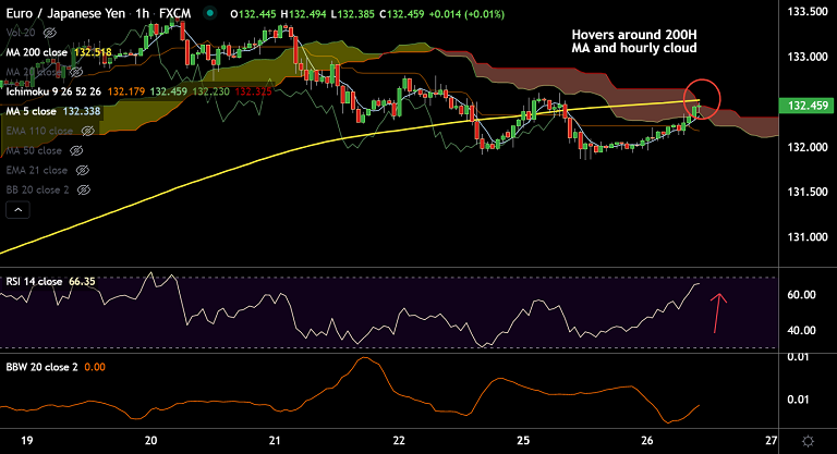 EUR/JPY was trading 0.28% higher on the way at 132.36 at around 09:10 GMT.