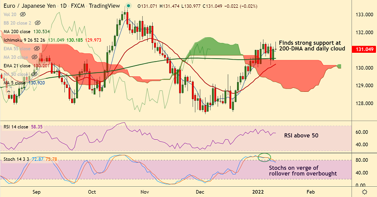 5-DMA is immediate support at 130.91. Break below will see dip till 200-DMA.