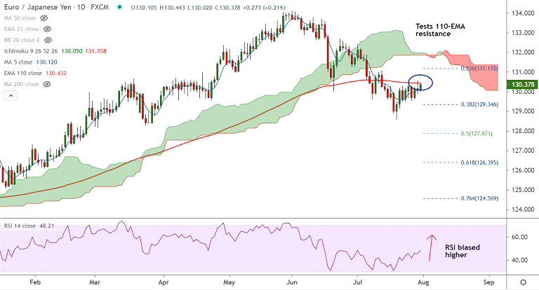 The pair is testing 110-EMA resistance, decisive break above to fuel further gains.