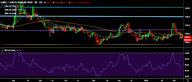 - EUR/KRW is currently trading around 1,291 mark.