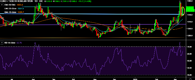 - EUR/KRW is currently trading around 1,360 mark.