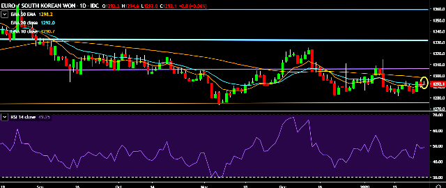 - EUR/KRW is currently trading around 1,292 mark.