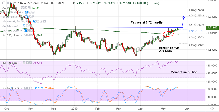 On the flipside, 5-DMA is immediate support at 1.7124. Break below 200-DMA negates bullish bias.