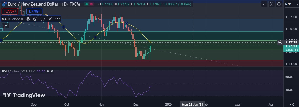 • EUR/NZD strengthened on Thursday as euro benefited after European Central Bank (ECB) downplayed the possibility of rate cuts.