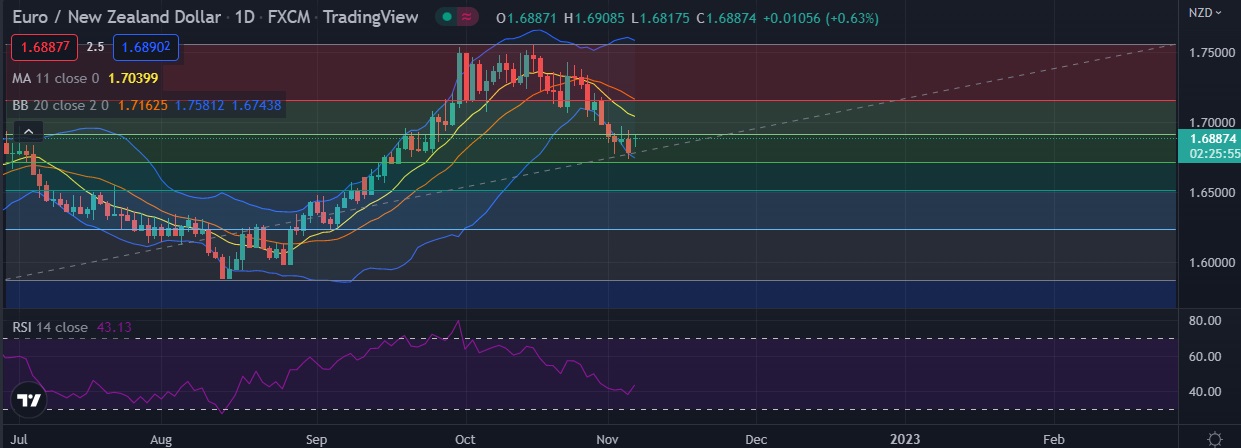 • EUR/NZD strengthened on Monday as the pair was supported by a risk-on sentiment across markets.